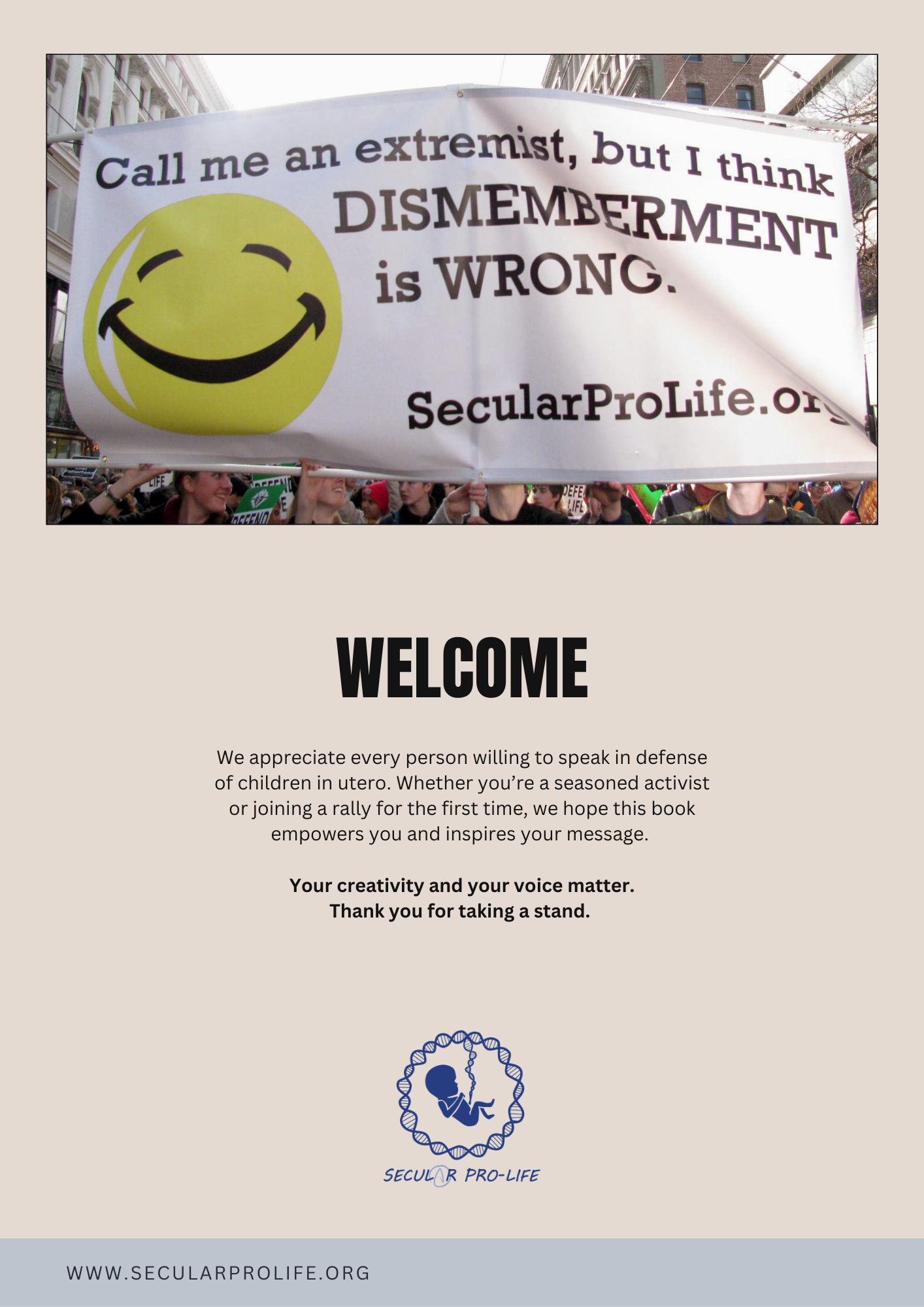We appreciate every person willing to speak in defense of children in utero. Whether you’re a seasoned activist or joining a rally for the first time, we believe this book can empower you and inspire your message. Your creativity and your voice matter. Thank you for taking a stand.