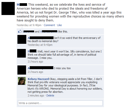 But this shouldn’t stop us from acknowledging the truth: Tiller was no hero. Not only was he an abortionist, but his medical negligence killed a young woman who had Down Syndrome. In 1989, he deliberately hit a peaceful pro-life demonstrator with his car (for which he was charged with felony assault). Comparing George Tiller to the real heroes who have defended our country is disgusting.