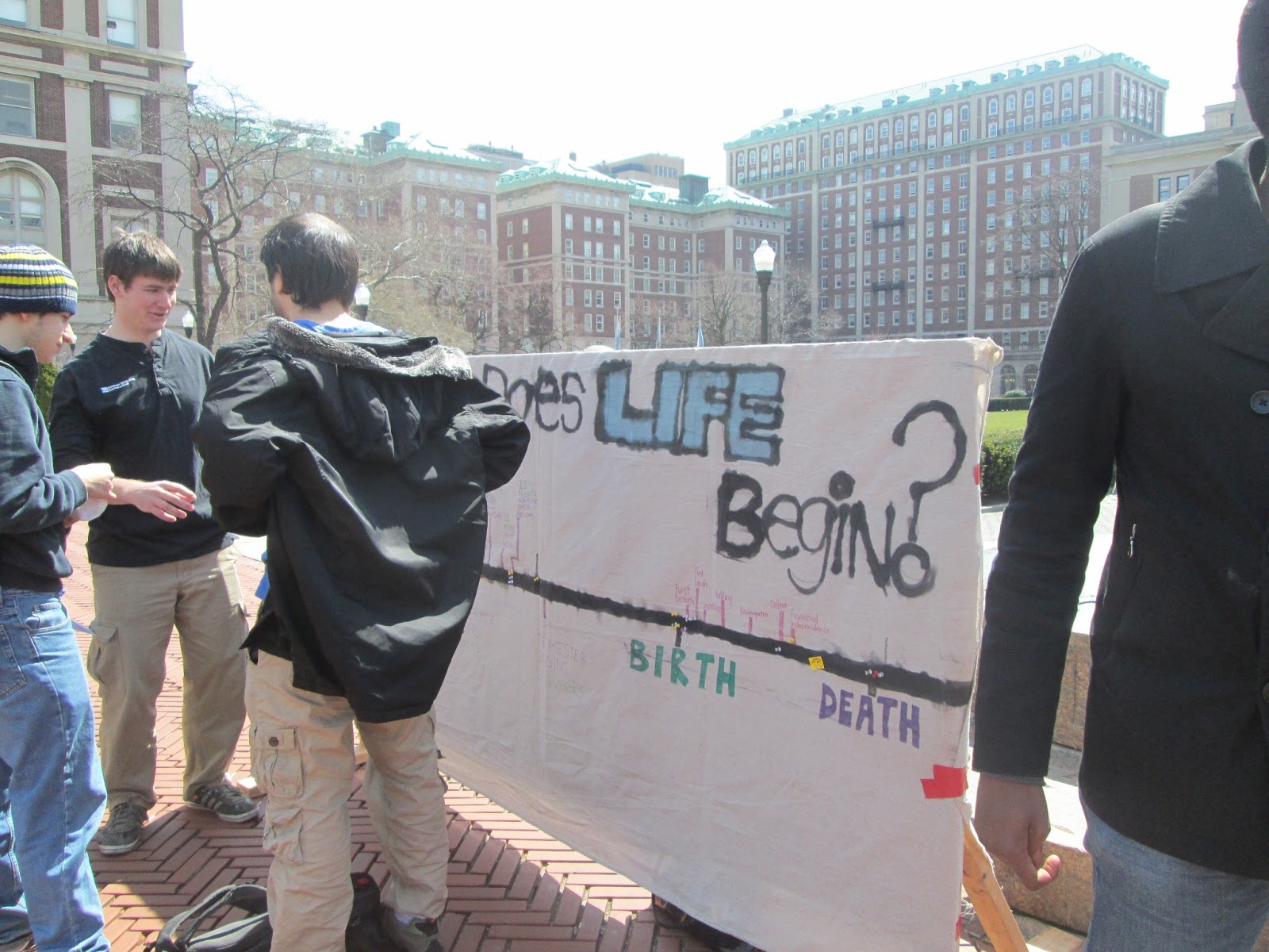| Above: Columbia Right to Life students organize a “When Does Life Begin?” display on Thursday afternoon |