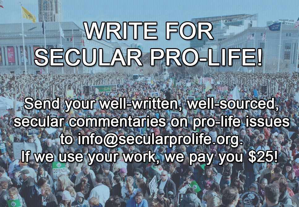 for publication. By “pro-life” we mean that the piece must reflect a desire to improve legal protections for preborn children and/or to improve support for women with unplanned pregnancies. Please also note that Secular Pro-Life does not endorse candidates for political office. - Graphics and photos: While these are not required, preference will be given to posts that come with eye-catching photos, charts, or other graphics to help illustrate the author’s points and capture the readers’ imaginations.