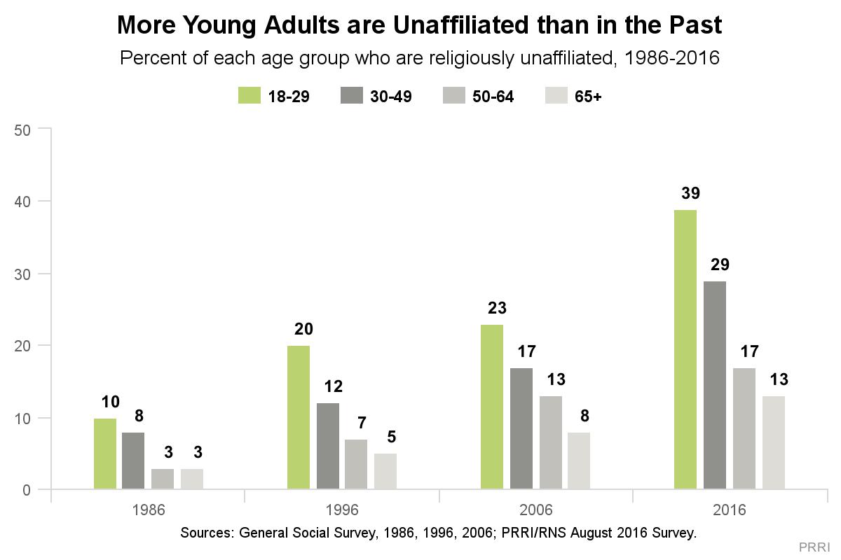 Consistent with previous surveys, PRRI found that Millennials are driving the trend (click to enlarge):
