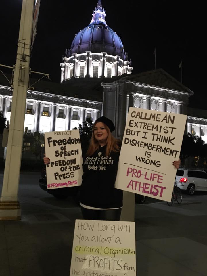 Monday night, Cecile Richards, CEO of Planned Parenthood, delivered a message entitled “The Future of Choice” in San Francisco. Pro-Life Future of San Francisco was on the scene that night to protest. It was a very cold in the city, and I wasn’t sure what to expect. Mostly I pictured a long line of people waiting to get in while they shouted at us. Beforehand, I had prepared a couple hundred copies of just one of the contracts between Stem Express and Planned Parenthood, specifically the Marmonte location (on pink paper), in the hopes that it would land in the lap of the Medical Director whose signature was highlighted on the agreement!