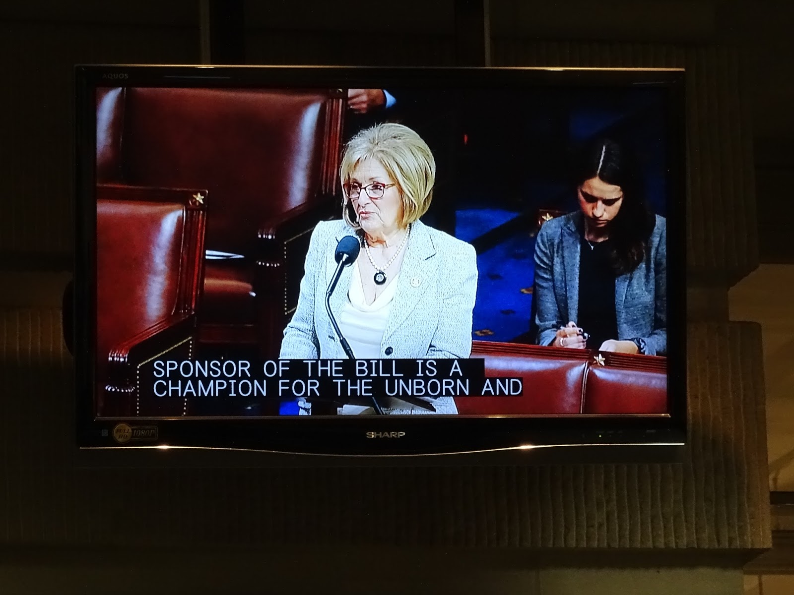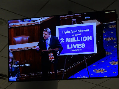 That conversation lasted so long that Lauren had to leave in the middle of it for lunch. In my attempt to meet up with Lauren later, I proceeded to get hopelessly lost. Finally we reunited and ate in a Congressional cafeteria, where the TVs displayed the House debate on the No Taxpayer Funding of Abortion Act (which would make the Hyde Amendment permanent).