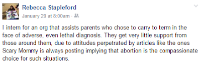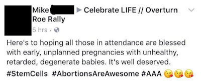 Being friends with people with disabilities really personalizes this issue for me. My friend and fellow pro-life advocate Rebecca (who often contributes to this blog) lives with disabilities. She finds her pro-life work particularly emotionally exhausting because of the unthinking ableist rhetoric she is exposed to on a regular basis. In despair, she reposts comments like this: