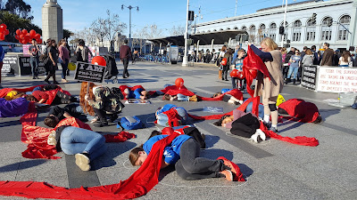 The Walk for Life concluded at the Justin Herman Plaza, where young adults from Survivors of the Abortion Holocaust conducted a symbolic “die-in” to remember the victims of Roe v. Wade: