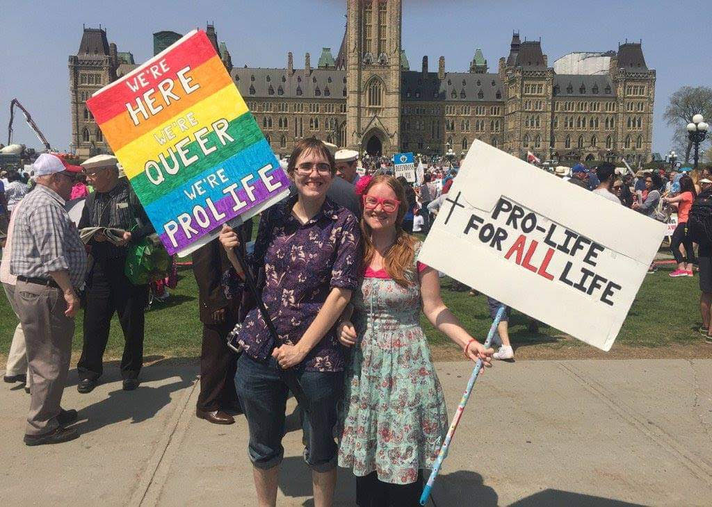 Since then we’ve been advocates. We were involved in the pro-life club during and after university. We went to the annual March for Life with a “We’re Here, We’re Queer, We’re Pro-Life” sign (the time we had tomatoes thrown at us!)