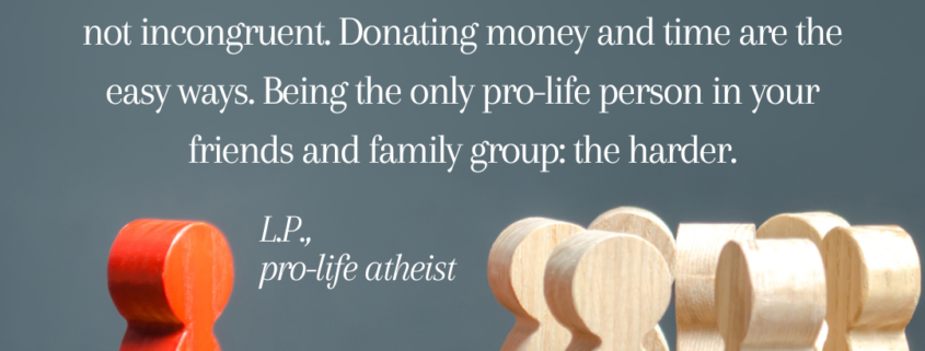 Once a month or so, the Secular Pro-Life blog features a short interview with a pro-life atheist. (See the full series of interviews here.) Although Secular Pro-Life is not exclusively for atheists, historically atheists have played a key role in the organization. As atheists become more prominent in the pro-life movement generally, we’re excited for the opportunity to share their stories. This month, we welcome L. P.!