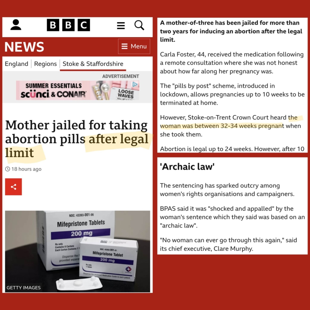In this case, BPAS provided Carla Foster abortion pills via telemedicine after she indicated she was 7 weeks pregnant. She was actually 32-34 weeks pregnant (a reality that would have been impossible to miss had they examined her). Her daughter was born not breathing and was confirmed dead 45 minutes later.