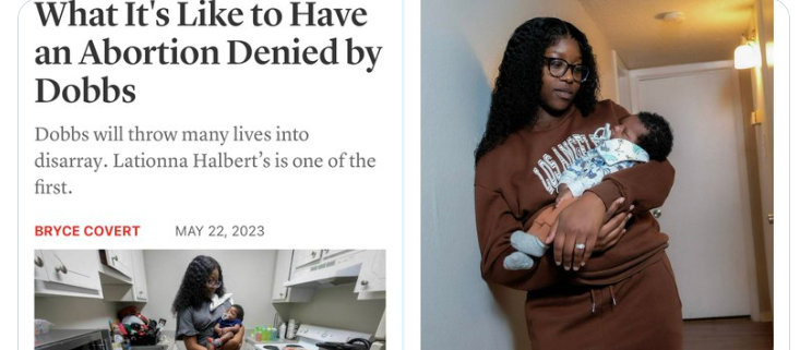 On May 22, 2023, In These Times published “What It’s Like to Have an Abortion Denied by Dobbs,” which profiles Lationna and her newborn son, Kinglsey. I came across the article because of this tweet:
