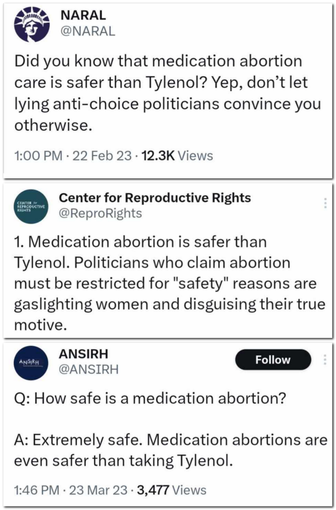 And these comparisons are all for acetaminophen toxicity, meaning people taking way more Tylenol than they are supposed to, compared to people taking the abortion pills as recommended.