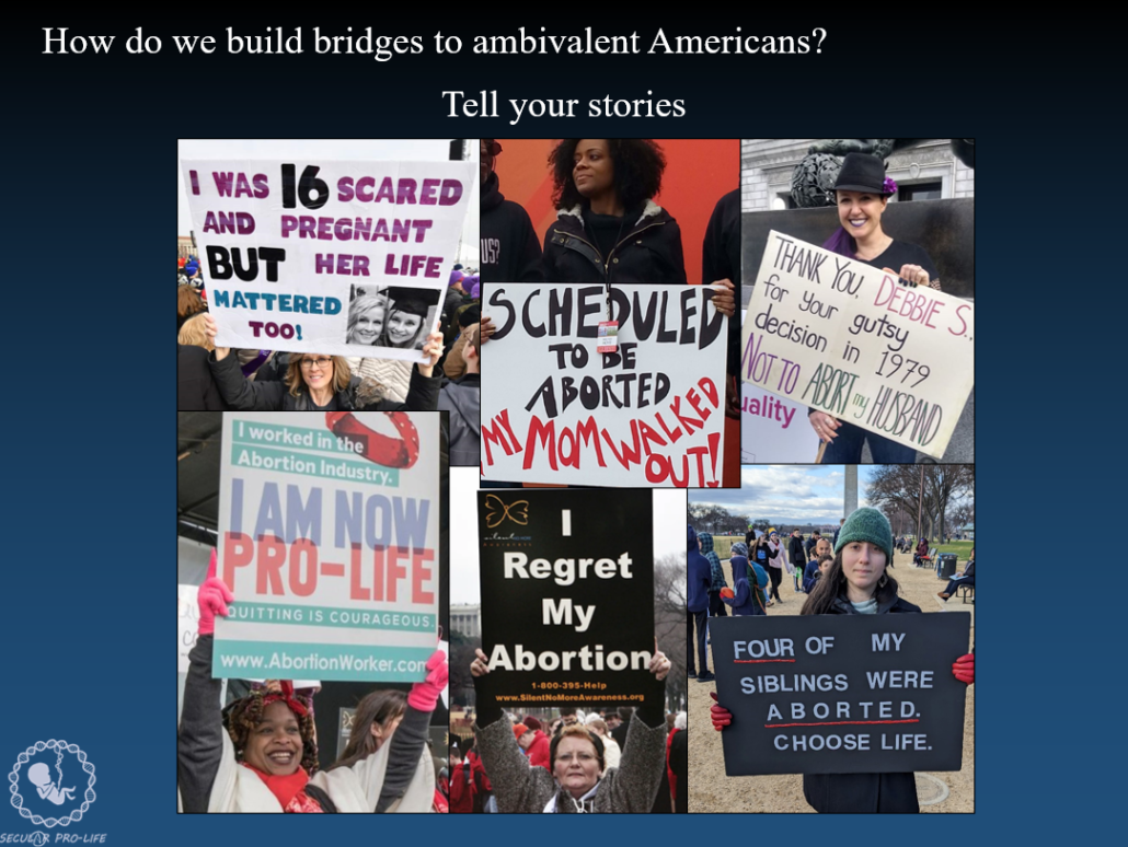 So I said I would make it happen. Specifically, I told the conference organizers I would discuss how to build bridges to three audiences: (1) abortion-vulnerable women, (2) ambivalent Americans, and (3) non-traditional pro-lifers.