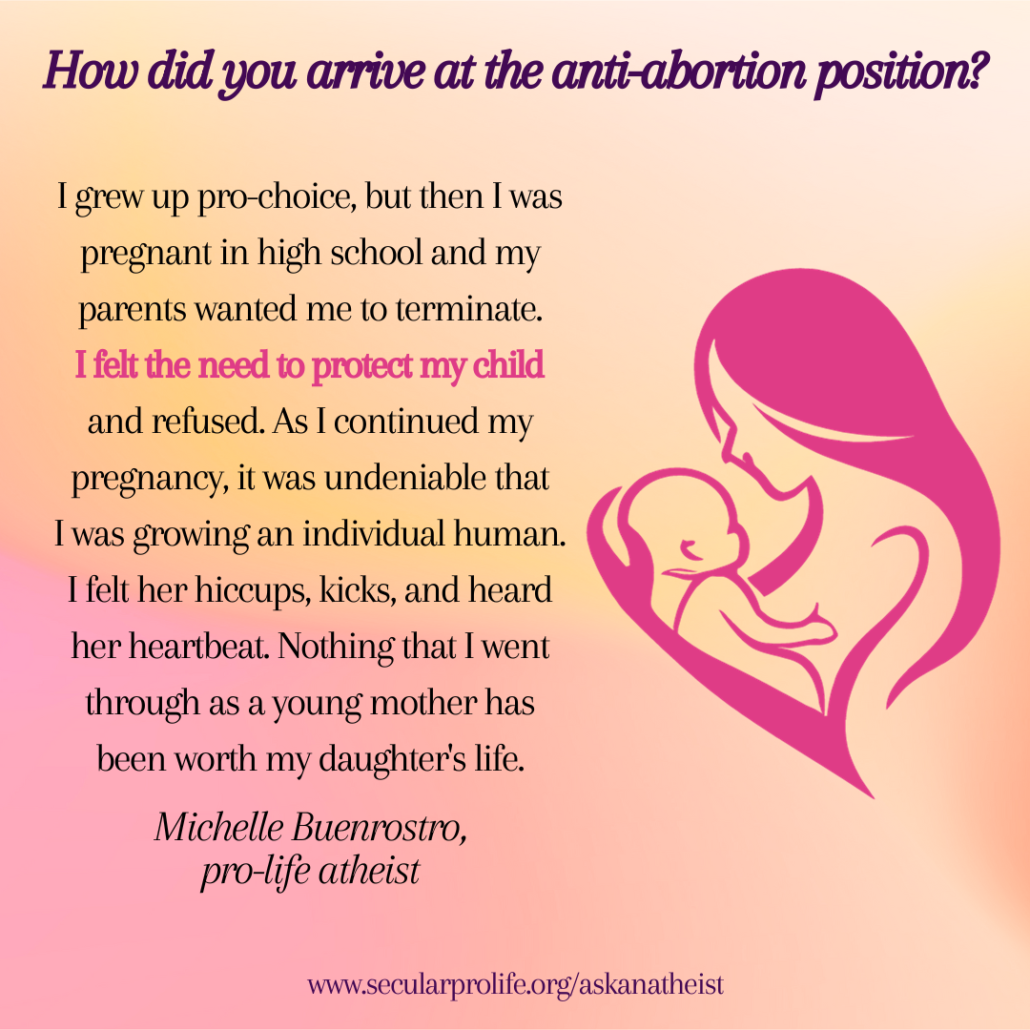 I grew up pro-choice, but then I was pregnant in high school and my parents wanted me to terminate. I felt the need to protect my child and refused. As I continued my pregnancy, it was undeniable that I was growing an individual human. I felt her hiccups, kicks, and heard her heartbeat. Nothing that I went through as a young mother has been worth my daughter’s life.