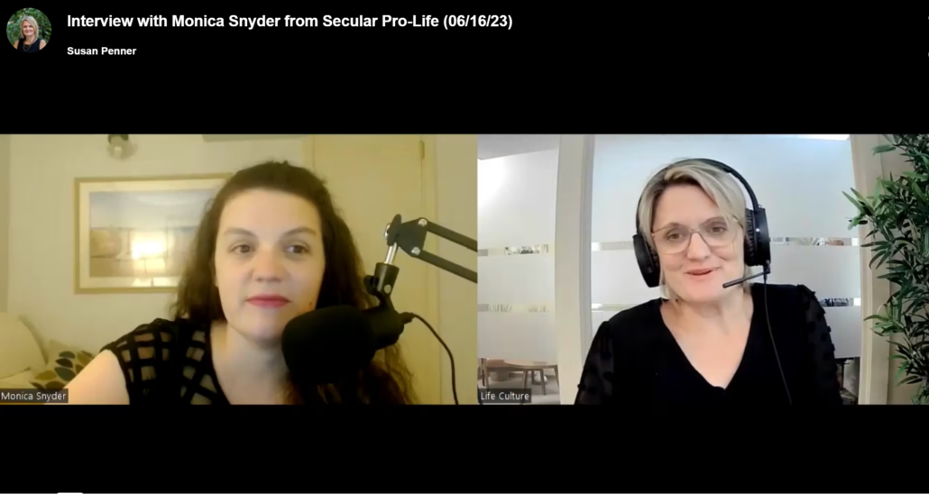 MONICA SNYDER: Sure. So, my name is Monica Snyder. I am the Executive Director of Secular Pro-Life, which is an anti-abortion organization that focuses on secular arguments against abortion. I am an atheist. The president and vice president are also atheists. But you do not have to be an atheist to be a part of the organization. We have a 3-part mission. The first part is to advance secular arguments against abortion. The second part is to create space for atheists or agnostics, or humanists or otherwise not particularly religious people to do anti-abortion work. And the third part is to build interfaith coalitions with anyone who shares our goal of advancing secular arguments against abortion. So, we work, among our volunteers, among our donors, among our supporters, yes atheists, agnostics, also Catholics, also protestants, also Mormons and Buddhists, and Reformed Jewish People and all types. And I like to emphasize that we don’t frankly care what your religious views are or even what your political perspectives are on other issues. We just care if you are with us in the fight against abortion. And so, while we are advancing secular arguments, you do not need to be secular to join in. We’ll work with, we want everybody to be Pro-Life regardless.