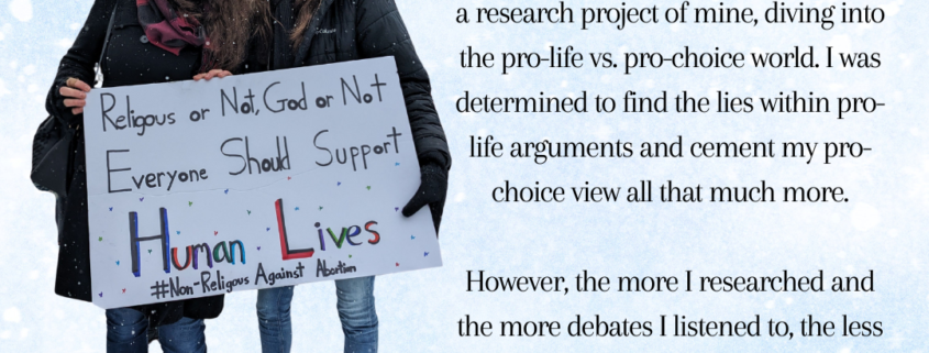 A few years ago, it dawned on me that I had never even given the opposing side a chance to make their case, so I began a research project of mine, diving into the pro-life vs. pro-choice world. I was determined to find the lies within pro-life arguments and cement my pro-choice view all that much more.