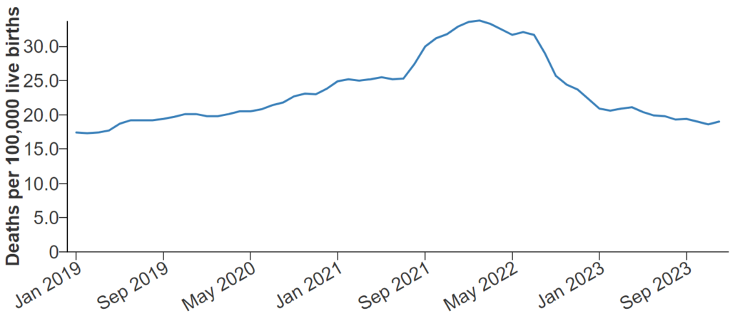 Thankfully, the Centers for Disease Control and Prevention reports that we are seeing some improvement. American maternal deaths – defined to include deaths related to abortion, miscarriage, or childbirth – have fallen to their pre-COVID level. The rate today is equal to the rate in September 2019.