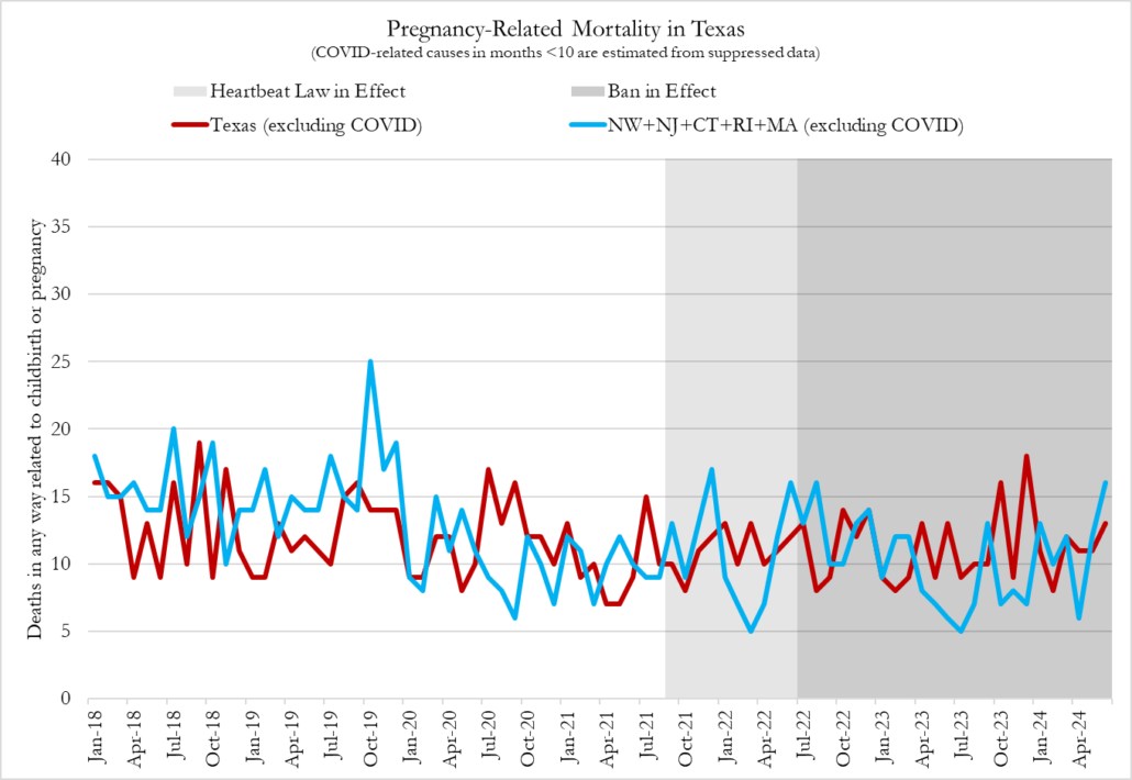 The Texas heartbeat law went into effect in September of 2021. So they’re claiming maternal deaths skyrocketed after September 2021. Right?