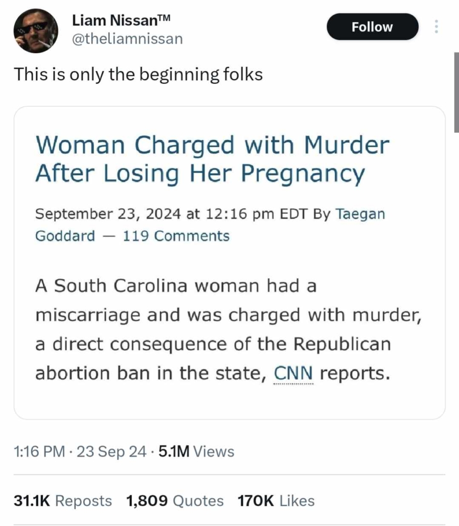 The CNN article goes on to discuss “pregnancy criminalization,” talking about South Carolina’s previous 22 week limit on abortion, since replaced by their heartbeat bill.