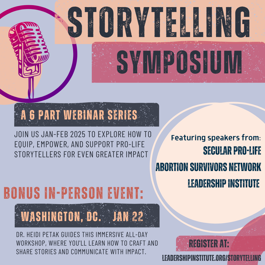 I’m delighted to announce that Secular Pro-Life is partnering with Abortion Survivors Network and the Leadership Institute to create the Storytelling Symposium: a 6-part webinar series (plus a January 22 in-person workshop) to teach pro-lifers how to equip, empower, and support our storytellers. You can register here.