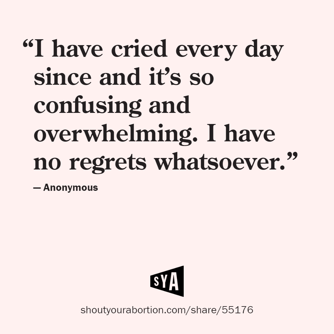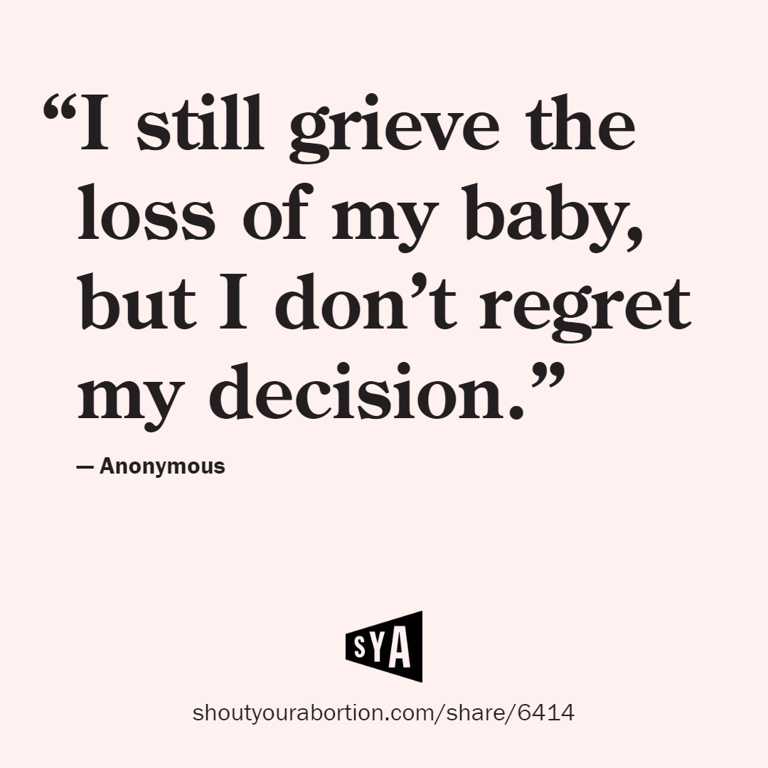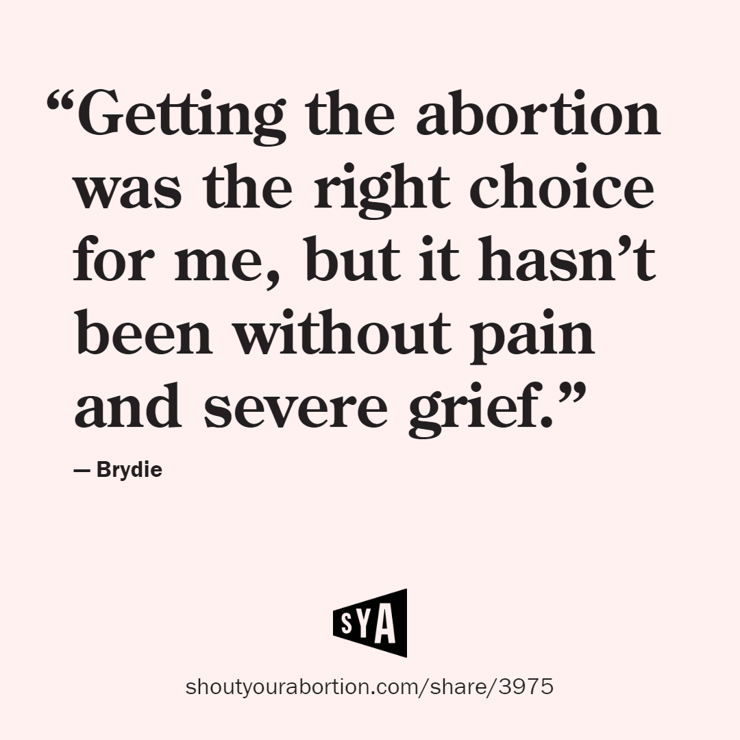 The story-telling abortion rights advocacy group, Shout Your Abortion (SYA), features many testimonials from women who affirm abortion was right for their circumstances. However a subset of those testimonials reveal complex emotional positions, with the same women who say abortion was right for them expressing deep grief and pain.