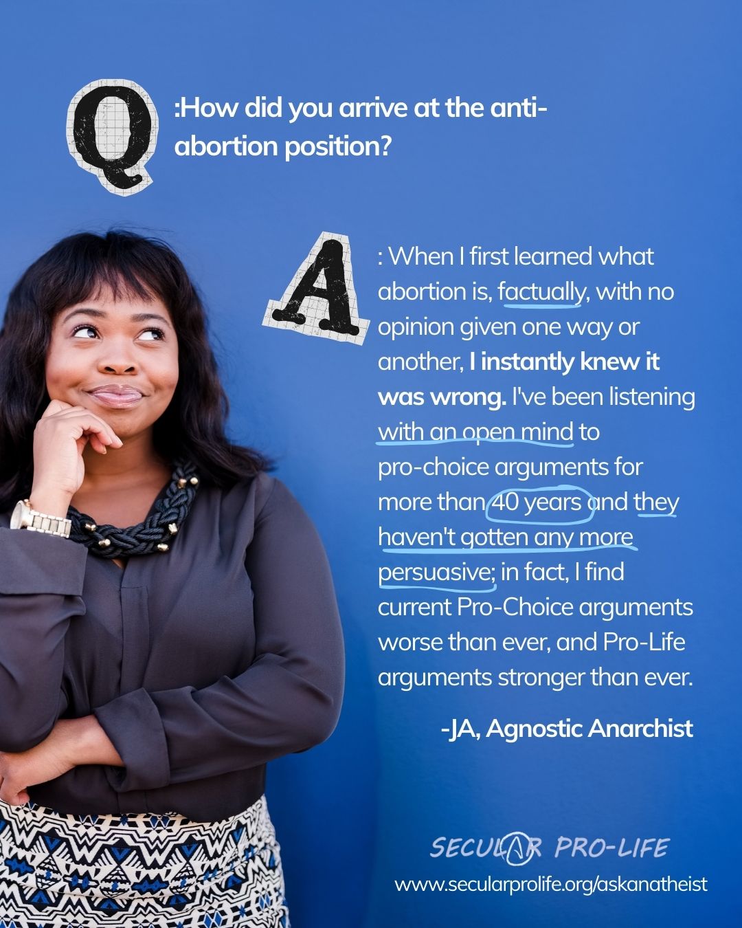Once a month or so, the Secular Pro-Life blog features a short interview with a pro-life atheist or agnostic. (See the full series of interviews here.) Although Secular Pro-Life is not exclusively for atheists and agnostics, historically they have played a key role in the organization. As they become more prominent in the pro-life movement generally, we’re excited for the opportunity to share their stories. This month, we welcome agnostic J.A.