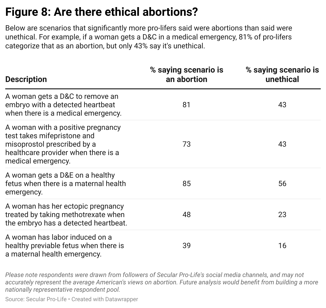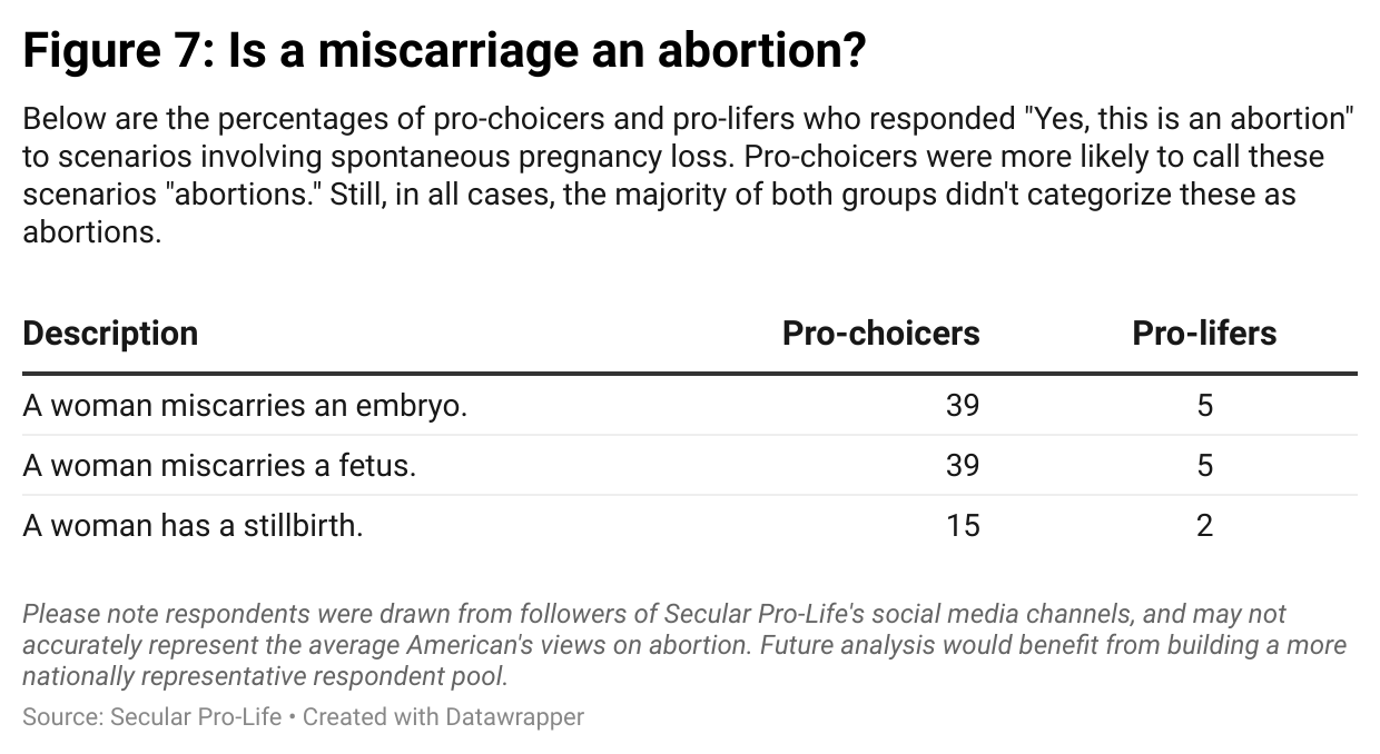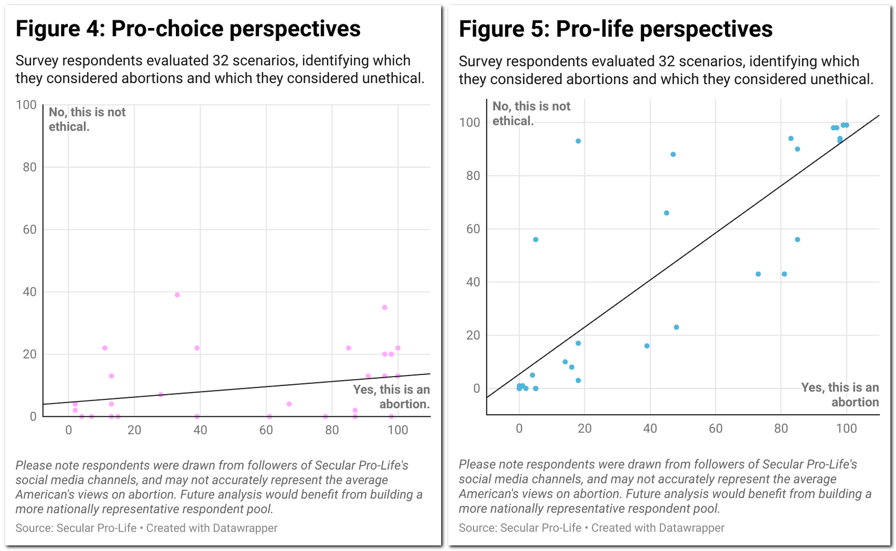At the same time, pro-life and pro-choice respondents each had scenarios where their own group gave mixed answers about whether it was an abortion, suggesting that neither group has a universally clear or consistent concept of abortion.