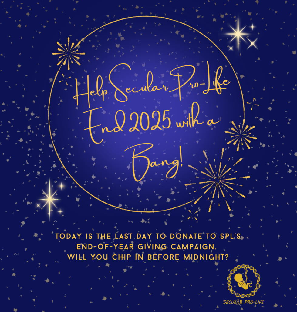 We are reaching out one final time because today is the last day to give to Secular Pro-Life’s year-end campaign. Before the clock strikes midnight, your support will make a real difference in how prepared we are to step into 2026.