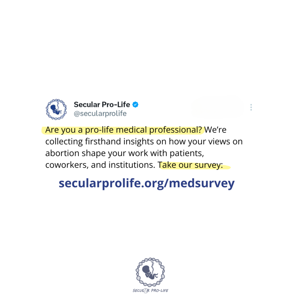 I’m looking for firsthand insights from pro-life medical professionals. If that’s you and you have a few minutes, please take my survey on how your views on abortion shape your work with patients, coworkers, and institutions.