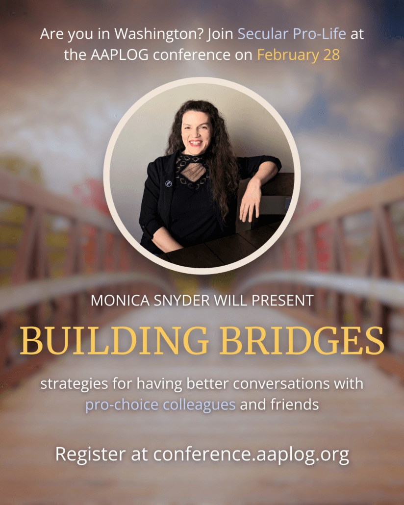 I’m delighted to report that the American Association of Pro-Life OBGYNs (AAPLOG) has invited me to present at their MBEC Conference in three weeks (Feb 28) in Seattle, Washington. I’ll be sharing insights from SPL’s Building Bridges presentation to train pro-life medical professionals to have better dialogue with pro-choice colleagues and friends.