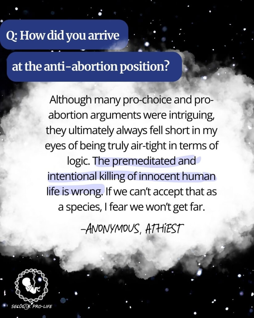 This month, we welcome an anonymous pro-life atheist.