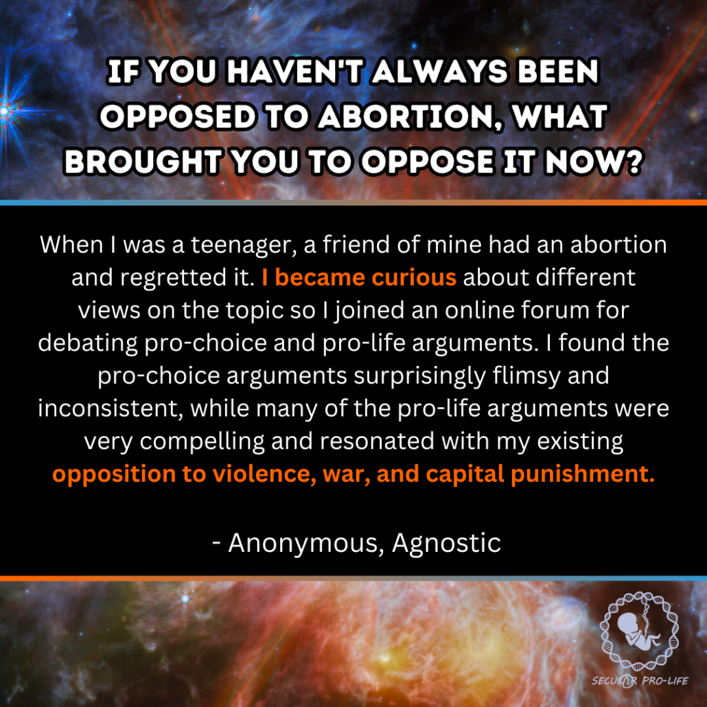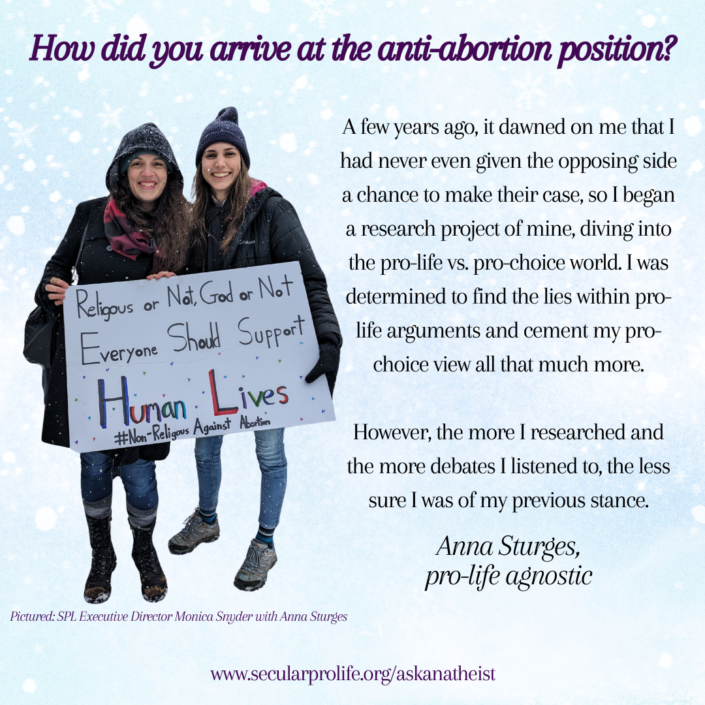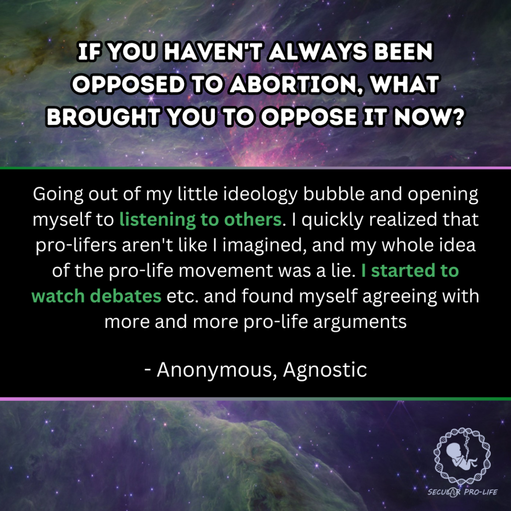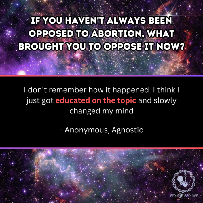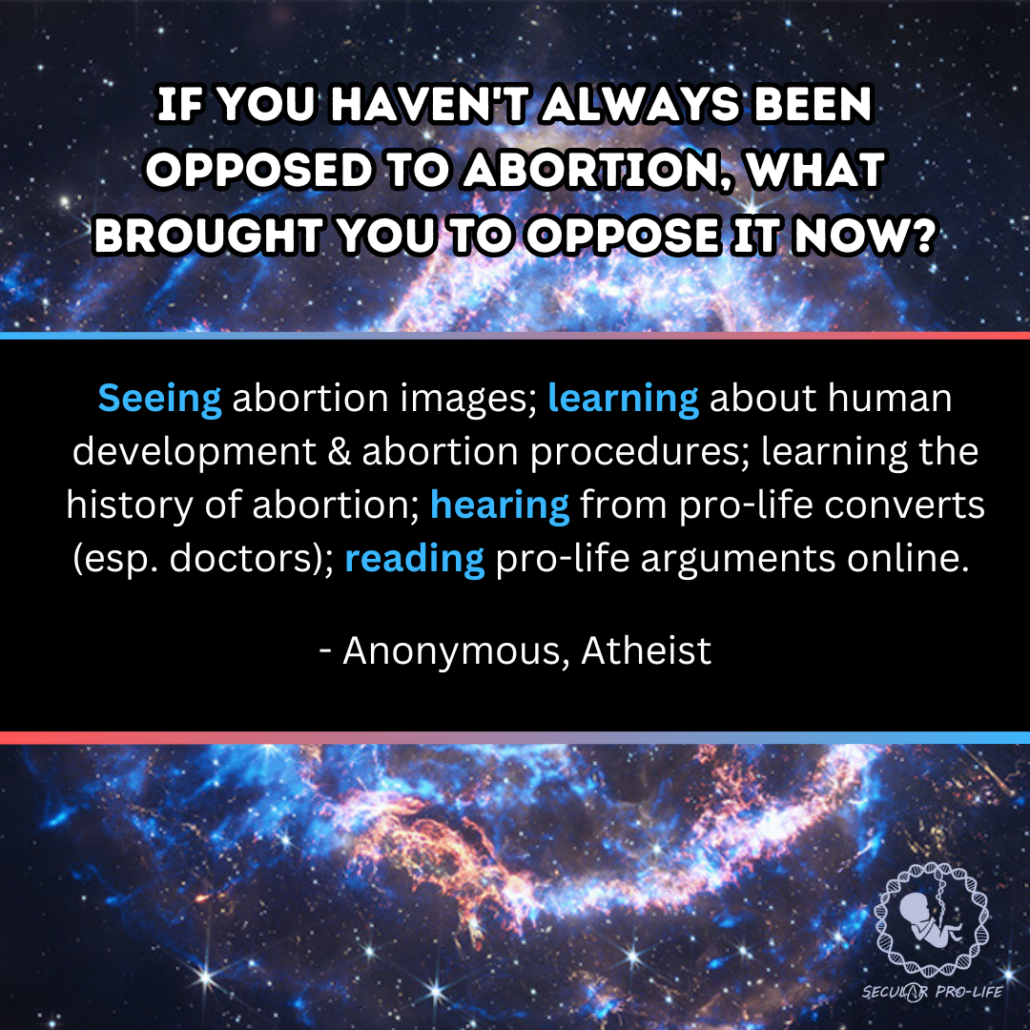It’s crucial that we demonstrate that anyone can–and everyone should–oppose abortion. Thanks to you, we are working to change minds, transform our culture, and protect our prenatal children. Every donation supports our ability to provide nonsectarian, nonpartisan arguments against abortion. Read more details here. Please donate today.