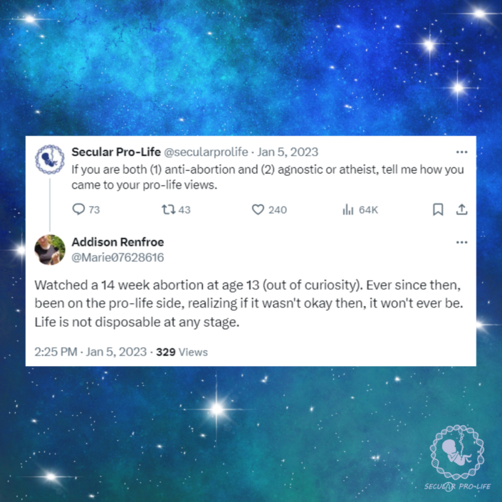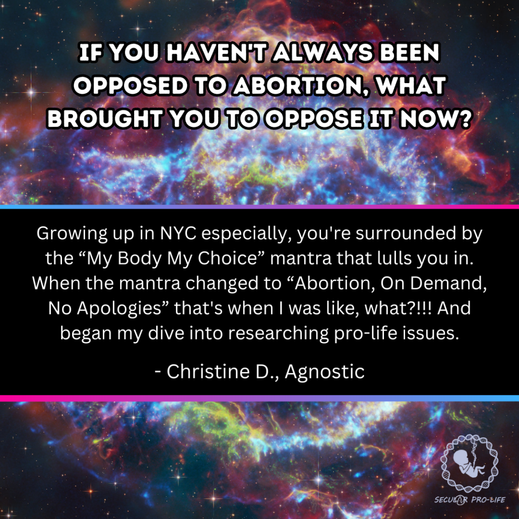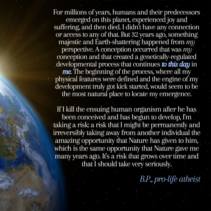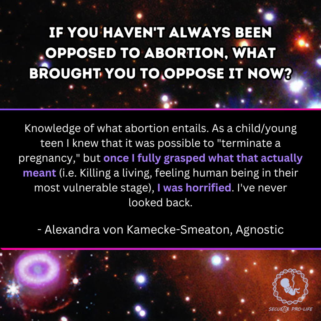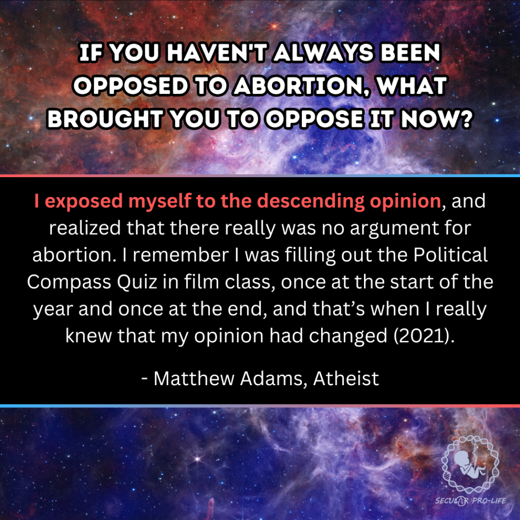 It’s crucial that we demonstrate that anyone can–and everyone should–oppose abortion. Thanks to you, we are working to change minds, transform our culture, and protect our prenatal children. Every donation supports our ability to provide nonsectarian, nonpartisan arguments against abortion. Read more details here. Please donate today.