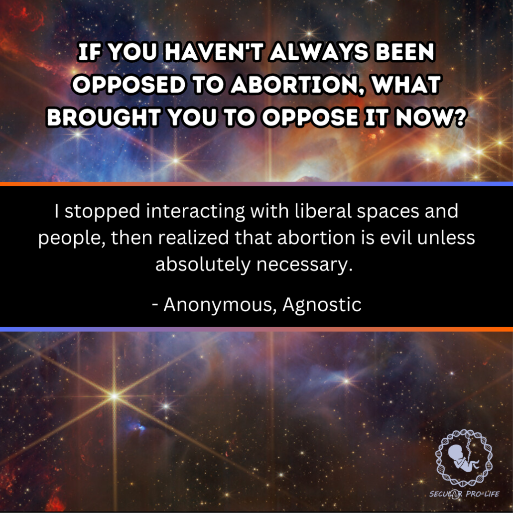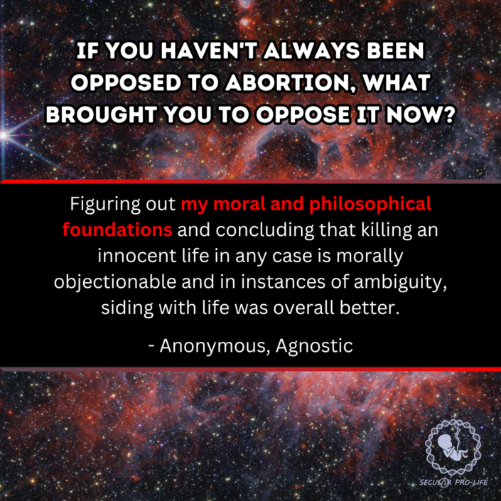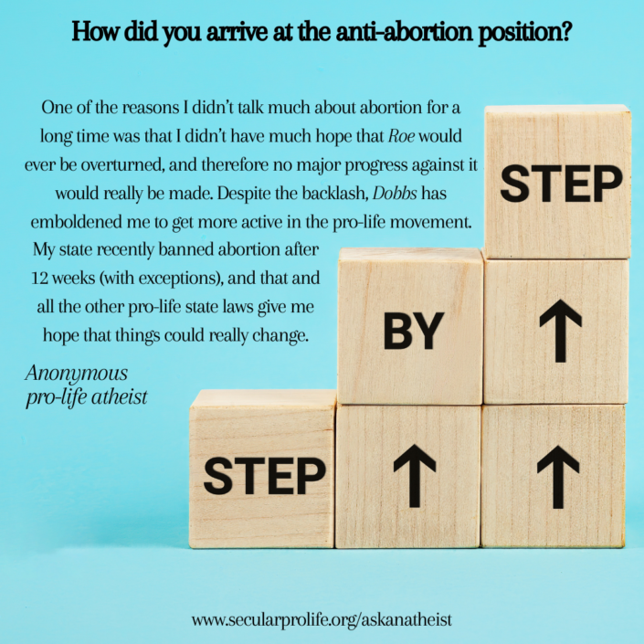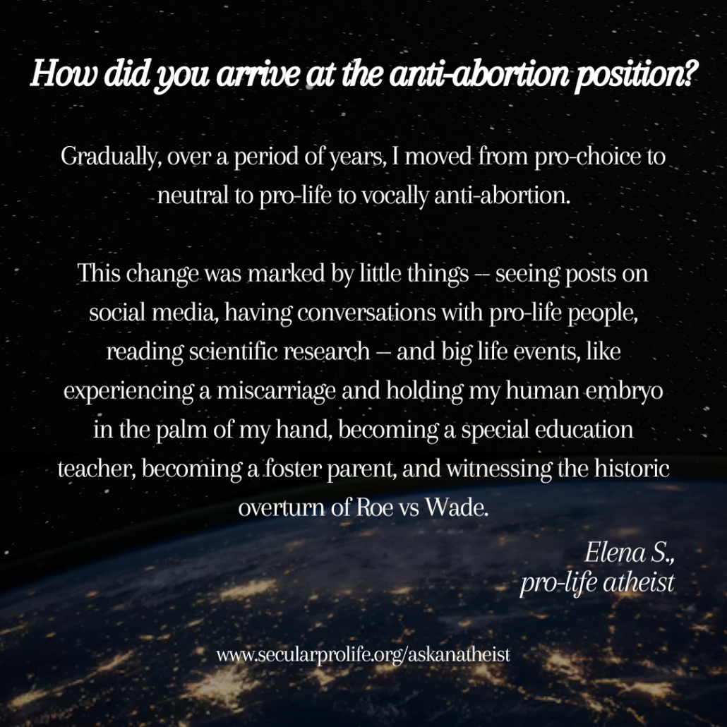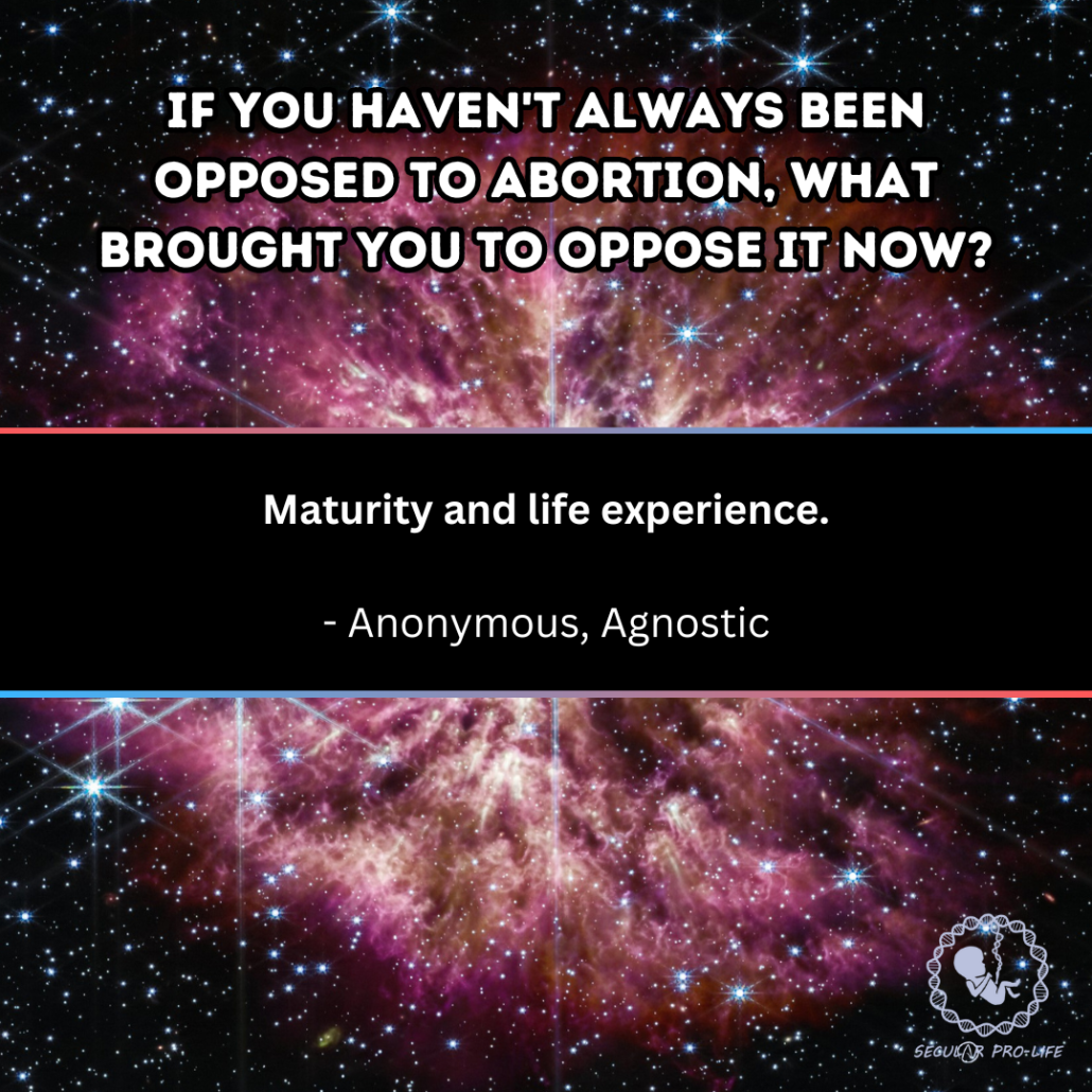 Gradually, over a period of years, I moved from pro-choice to neutral to pro-life to vocally anti-abortion