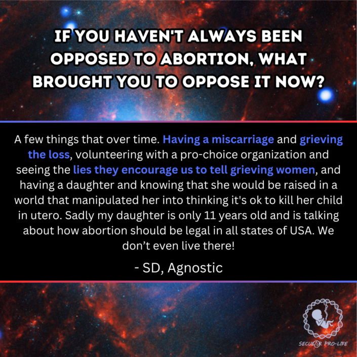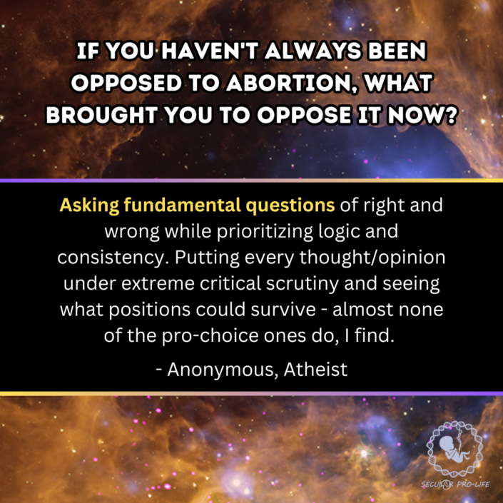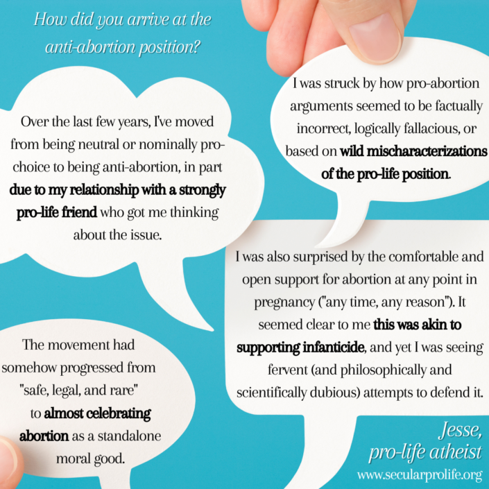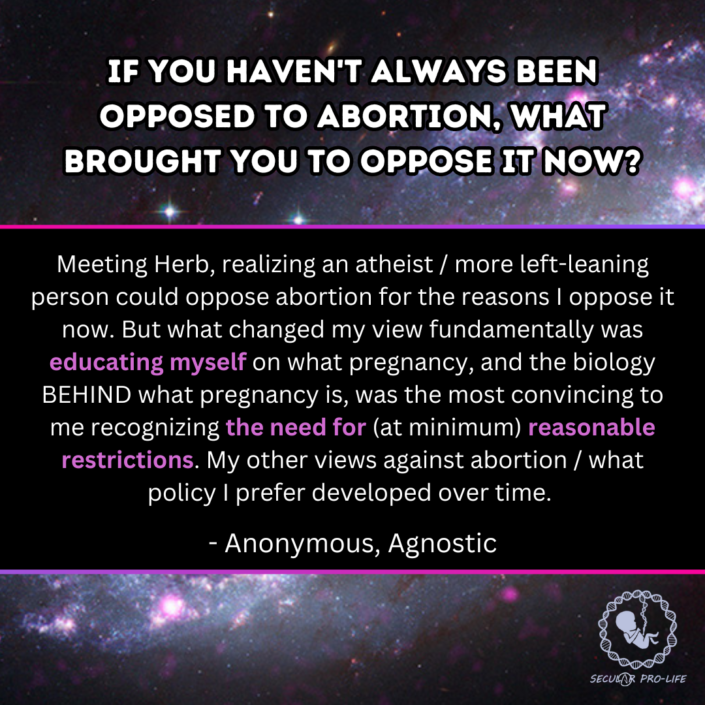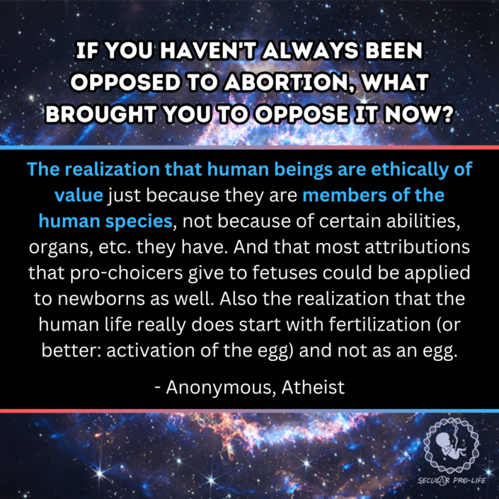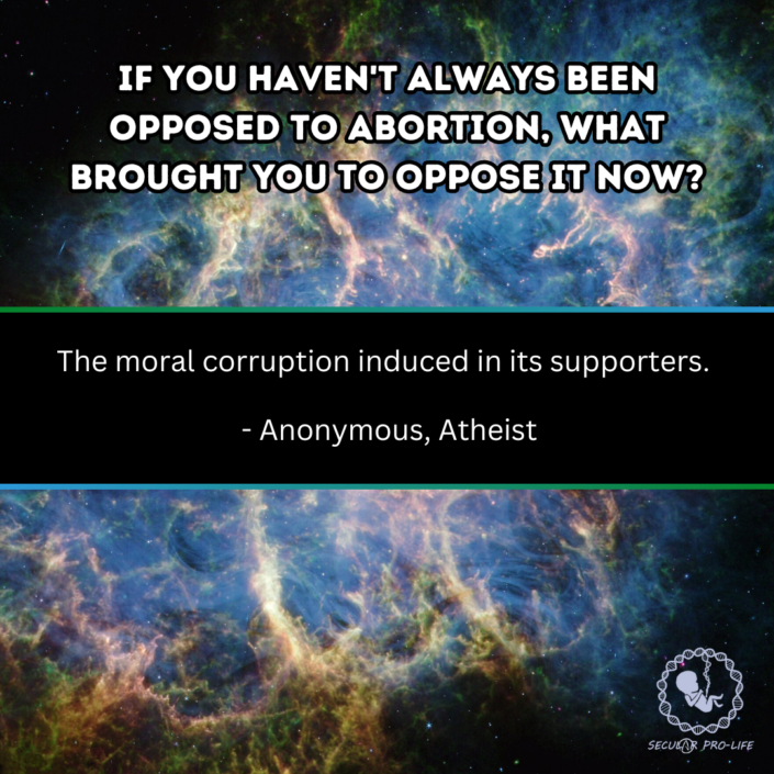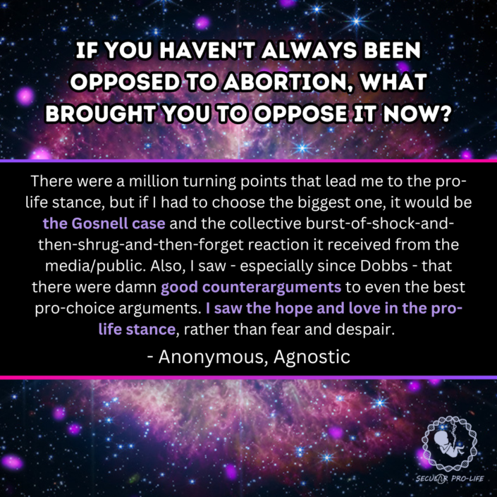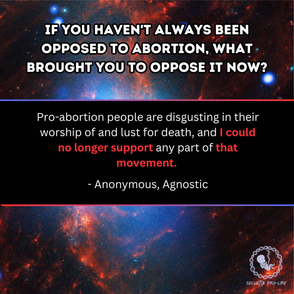 Gradually, over a period of years, I moved from pro-choice to neutral to pro-life to vocally anti-abortion